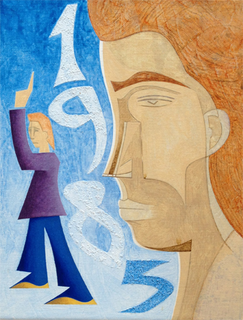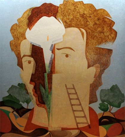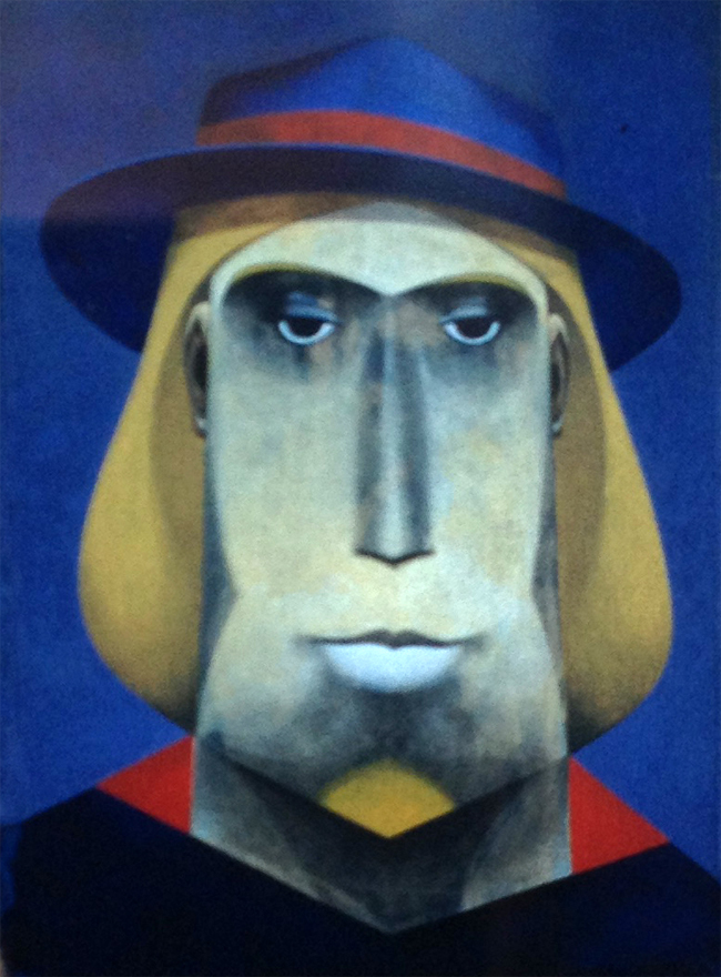 In the persistent gaze of the eyes, he paints staring in a stubborn and at the same time abandoned look, in the austere separating lines, in the conservative, yet genuine and warm colours, I see unexpected, orderly muddling of the levels that separate and unite the everyday world around us with the one that lives inside our bodies, breathes in our soul and fights in our intellect. Hayiannis paintings reflect the agony and asphyxiation of emotion that has been, leading to a peace that resembles that of Socrates. Salvation achieved neither after nor through suffering, but right in the very centre of the pain, stoicism at the blinding light of its intensity. Austerity, discipline at the search for the absolute, accompanied by the bitter certainty of the unachievable.