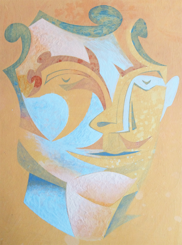 In the persistent gaze of the eyes, he paints staring in a stubborn and at the same time abandoned look, in the austere separating lines, in the conservative, yet genuine and warm colours, I see unexpected, orderly muddling of the levels that separate and unite the everyday world around us with the one that lives inside our bodies, breathes in our soul and fights in our intellect. Hayiannis paintings reflect the agony and asphyxiation of emotion that has been, leading to a peace that resembles that of Socrates. Salvation achieved neither after nor through suffering, but right in the very centre of the pain, stoicism at the blinding light of its intensity. Austerity, discipline at the search for the absolute, accompanied by the bitter certainty of the unachievable.